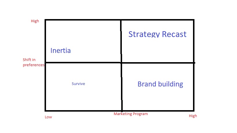 “We have done enough selling, let marketing take over now” – thus suggested the boss in my earlier avatar as a sales manager. He would go on to explain further – when we are dealing with consumer choices and preferences and in various ways that consumers engage with brands, we better be focusing on the right mix of marketing programs. So, what happens when a firm does not respond to the shift in consumer preferences by way of crafting an alternative strategy and building a calibrated marketing program? They just might end up managing falling sales numbers riding on the legacy of a brand in the short term. Not responding to business challenges is an anti-thesis to the very core of marketing strategy – after all, consumer value is a dynamic proposition! Therefore, not responding with a re-crafted value proposition to address changing consumer preferences is what we term as Marketing inertia. One of the key predictors of marketing inertia is a lack of ability to respond to the shift in consumer preferences, buying processes and brand engagement. These shifts can be of lower degree or towards a higher degree. However, if the marketing program remain low key in a low degree shift situation, this could be taken as a strategic position that a firm may take to just maintain its position. But the same level of marketing program in high degree shift situation will simply be an inertia – inability to move up the marketing pitch.